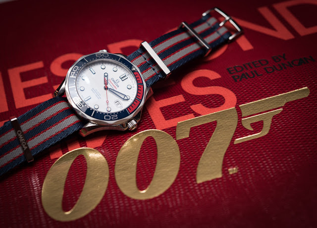 La réplique de Omega Seamaster Diver 300M "Commander's Watch" en acier inoxydable 212.32.41.20.04.001 a été lancée lors d'un événement à Londres pour commémorer l'utilisation de longue date de la Seamaster par Bond dans le film et sa relation de longue date avec le Commandant. L'édition limitée de la montre du Commandant est techniquement la même que les autres répliques des montres Seamaster 300M Diver, avec un boîtier de 41 mm et le calibre Omega 2500 avec échappement Co-Axial. La principale différence réside dans la palette de couleurs, le bracelet et la lunette reflétant les couleurs d'un enseigne de la Royal Navy. La lunette est en céramique bleue avec des écailles en métal liquide et le cadran est en céramique blanche.